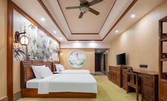 The hotel's garden landscape is equally stunning, with rare tree species such as yew, ginkgo, and paulownia planted throughout the courtyard. The 3000 meter water landscape corridor complements the aerial lotus lake garden, incorporating elements such as water, stones, and mountains into the "Tai Chi Bagua" to create a three-dimensional landscape garden.