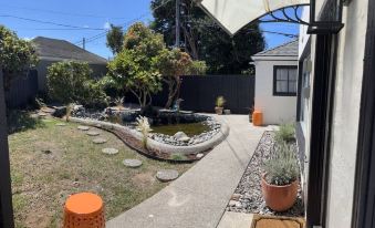 The property is accessed through a gate in the alley off Grotto street between D and E streets. It is the only residential home on a street lined with businesses. Security camera outside entry gate in alley for guest safety while entering or parking cars outside. No cameras in yard or directed at home.