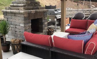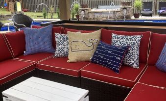 Spacious, full kitchen with stainless steel appliances, including oven, refrigerator, microwave, dishwasher, crock pot, Keurig, toaster, can opener and outdoor gas grill, Blackstone grill, Kamado Joe grill and Rec Tech grill.