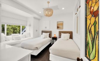 Enjoy our serene and beautiful loft apartment in south Rancho Santa Fe. The space is upstairs over the garage attached to our main home but separated by a locked internal door. Quiet and private retreat on garden like 2 acre estate. Kid friendly and just minutes from the beach, fair grounds, restaurants, golf, horse riding, and shopping. This spacious 900 sq ft getaway includes wifi, two flat screen TVs, kitchenette, dining table, King bed, additional two twin XL beds that can convert to a King, and a queen airbed for additional guests. 7 miles from the beach, 2.5 miles from Trader Joe's.