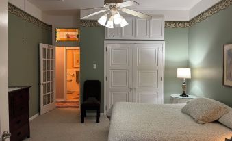 Each bedroom features a king-size bed, and the sunroom includes a queen sleeper sofa. There’s also room for air mattresses if needed for children—two twin air mattresses or a portable playpen are available upon advance request. That means sleeping space for 6 in beds and 2 children on air mattresses.