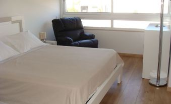 - A room with double bed (160x200cm) and a small balcony overlooking the Praceta with the playground.