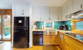 Welcome home to this wooden beauty with banquet seating, tall ceilings, and plenty of room for the whole family or group of friends. You'll love hitting the hot tub when your muscles can't take another mogul. When there's no snow on the ground relax in the hammock or grill up dinner on the deck.