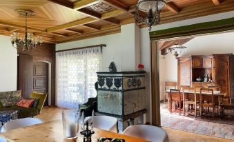 The Fifinhaus offers a spacious, family-friendly holiday apartment with room for up to ten people. The accommodation features five bedrooms, a modern kitchen-living area, a traditional Stüble and a cozy living room with a Swedish stove – ideal for relaxing hours in the cooler seasons. A children's bed is also available. The kitchen is fully equipped and provides ample space for shared meals in larger groups. Outside, a sunny seating area invites you to linger. During the summer months, a terrace with a large grill is also available – perfect for cozy evenings outdoors. Entertainment is provided by a table football game, which is equally popular with children and adults. Pets are welcome.