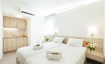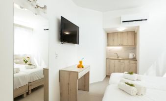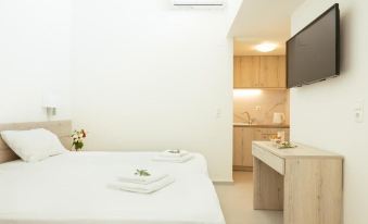 Τhe rooms has 1 double bedroom and can accommodote 2 adults. Has all the modern facilities located beachfront and included free breakfast and sun umbrella and 2 sun beds.