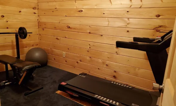 The lower level has a Game room with smart TV & DVD, seating area, foosball table, dart board and plenty of board games and DVD’s. It also has a full bath and small workout room with treadmill & weights.