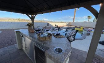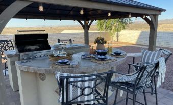 Welcome to our Desert Oasis. We have the perfect spot for you!! Enjoy a day at the lake, an afternoon on a Razor or a night at the casino our home is the spot to enjoy the beauty of Arizona desert. Enjoy Netflix on 80in TV or lounge in the volleyball pool(3.5 sides/5ft middle). BBQ and dine under covered patio.  Friendly neighborhood.  Quiet hours: 10pm-7am.