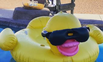 Does New! Desert LUX Oasis LARGE POOL SPA BBQ FIRE-PIT have a swimming pool?