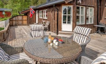 Holiday development "Solfridbu". 12 km from the centre of Kyrkjebygd, 78 km from the centre of Mandal, 83 km from the centre of Kristiansand, 400 m from the lake. Bathing place. Private: natural state property. Terrace, garden furniture, barbecue, parking on the premises. Shop 12 km, bus stop "Eikerapen" 300 m, ferry "Kristiansand" 83 km. Fishing possibilities 2 km. "Solfridbu", 4-room house 90 m2. Renovated in 2011: living/dining room with Scandinavian wood stove, dining table and satellite TV. Exit to the terrace. 2 rooms, each room with 1 double bed (150 cm, length 200 cm). 1 room with 2 beds. Open kitchen (oven, dishwasher, 4 ceramic glass hob hotplates, toaster, kettle, microwave, freezer, electric coffee machine). Shower/WC, sep. WC. Electric heating. Terrace furniture, barbecue (portable), box-room. Facilities: washing machine, children's high chair, baby cot. Internet (WiFi, free). Please note: non-smoking house. Smoke alarm, fire extinguisher. Freezer approx. 100 l. 924531169