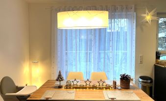 Furnished to a high standard, Smart TV, HD channels, very fast Internet 100 Mbit, work station with charging station and USB plugs, child-friendly, small pets allowed, including bed linen, towels and a large, modern kitchen, dining table for 4 people, including free parking nearby.