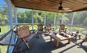 The Irish House exudes timeless charm and rustic character. This cozy cabin offers a nostalgic retreat for guests seeking a tranquil escape. With two bedrooms, it comfortably accommodates 6-8 guests, ensuring a comfortable stay for families or small groups. The main bedroom, situated off the kitchen, features a plush queen-sized bed, while the second bedroom boasts one set of twin over twin bunks and a queen size bed, perfect for the little ones or additional guests. Tucked near the property's entrance, The Irish House offers a sanctuary away from the hustle and bustle of other homes or guests, allowing for a peaceful and secluded getaway. The screened-in patio provides a picturesque setting to unwind and admire the beauty of the surrounding landscape. Outdoors, an inviting firepit beckons for evenings spent observing the stars, while a barbecue grill offers the opportunity for outdoor dining. With its idyllic location and quaint amenities, The Irish House promises a memorable stay steeped in history and tranquility.