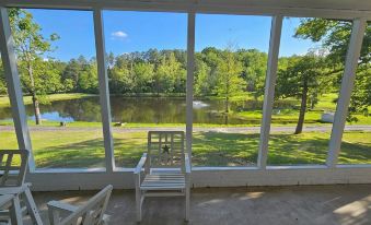 The Lake House exudes charm. Its screened-in patio provides guests with breathtaking views of the lake and sprawling property. This home accommodates up to 8 guests, boasting two bedrooms and a shared bathroom. The first bedroom is adorned with two sets of twin-over-twin bunk beds. Meanwhile, the second bedroom features a plush queen-sized bed. A queen sleeper sofa is available in the common area, providing extra space for guests to unwind and enjoy the peaceful ambiance of The Lake HouseAbout pets:No pets allowed.About children:Children allowed: ages 0-17.About smoking:Smoking is not permitted.About events:No events allowed.