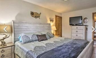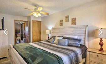Fireplace | Grill | Near Ski Shuttle Bedroom 1: King Bed | Bedroom 2: King Bed | Living Room: Full Sleeper Sofa CONDO FEATURES: 3 flat-screen TVs w/ Amazon Fire Sticks, dining table, board games, en-suite bathroom, patio w/ lounge furniture KITCHEN: Dishwasher, cooking basics & spices, drip coffee maker, Keurig coffee maker, Crockpot, toaster, knife set, dishware & flatware GENERAL: Free WiFi, central heating, complimentary toiletries, linens & towels, trash bags & paper towels, hair dryer, hangers, self check-in FAQ: Stairs required for access, Ring Doorbell device (facing front door entry) PARKING: Community parking lot (first-come, first-served), trailer parking
