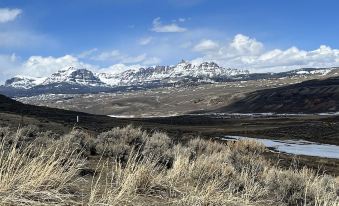 Horses & dogs welcome! 30 miles to Grand Teton NP, 70 miles to Yellowstone. Come enjoy the open space, privacy, mountain views, and easy trail access for your horseback, hiking or snowmobile adventure and avoid the crowds of Jackson. Nine miles to both Brooks Lake Road on the Continental Divide Trail, and the quaint frontier town of Dubois. Host is an expert on local trail systems and Wilderness Areas to help you plan your excursions. Pasture and/or corral available & ample parking for vehicles & trailers. Rustic craftsman Cabin is a studio-open floor plan with a queen bed and a LaZBoy queen sofa bed with a 2" memory foam topper. Small well equipped kitchen and a bathroom with shower. Glass door on woodstove creates a great ambience. Sunroom is separated by a door for privacy and contains king foam futon and a double-ended 2-person clawfoot soaking tub with a phenomena 270 degree mountain view. Star gazing is amazing here with zero light pollution, as well as the Northern Lights if you're lucky. Foodies will enjoy the well stocked kitchen to welcome you, plus all the herbs, spices and staple ingredients you need to cook a feast. Due to woodstove folks with dust or smoke allergies, or a fear of horses, should not book here. Horses are loose on the property so gate must be closed. Best suited for a couple or tight-knit group or family, not child-proofed so parents must be attentive.$About pets:Pets allowed: less than 50 lbs per pet (limit 8 pets total).About checkOut:Check out before 10:00 AM.About children:Children allowed: ages 0-17.About customRules:Use care with bath tub! There is no overflow drain, so do not leave it unattended when filling, don't fill more than half way before getting in..Smoking outside only, use butt can outside door, please don't litter.