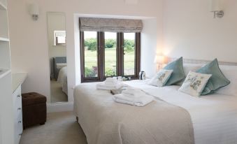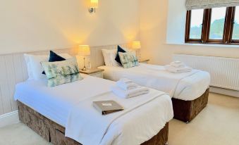 Stayed in an amazing family room in the "farmhouse". Beautiful spacious room and bathroom, spotlessly clean, with fridge, kettle tea coffee etc. Bottled water each day and complimentary toiletries. Downstairs we had use of a living room with board games etc. Fantastic grounds with beautiful views and a great childrens play area for our 10 year old. Being able to use the pool next door ( free during our stay) was a bonus. The Lighthouse team were very friendly and welcoming. My daughter loved how they carefully arranged her soft toys when making up the room too!! Delicious breakfast, daughter loved the pancake machine. Some reviews mention it is odd pre ordering but we found it easy and it meant that our breakfast was freshly made for us. Overall, loved our stay in a beautiful peaceful place would recommend to anyone.