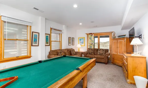 Always arrive before dark because the beach is more difficult to navigate at night. We recommend lowering your tire pressure to 15-20 psi so bring a tire pressure gauge along. Tires can be re-inflated at any of the area gas stations or the county put in FREE air stations at the Historic Corolla Park, 1100 Club Road, Corolla. The Park is on the sound side of the road. Turn in at the park road, make a right at the stop sign and another quick right into the gravel parking lot. The air up stations will be at the end of the lot. Check area tide charts prior to arrival. Low tide is ideal for beach driving. Follow all posted speed limits (35 mph or 15 mph when within 300 feet of pedestrians or wild horses). Drive on the hard-packed sand near the edge of the water or close to the dunes. Leave the middle of the beach available for parked vehicles. Drivers must be 16 years of age and possess a valid driver’s license. ATVs are not permitted. Also, Currituck County does not allow personal motorized watercraft on the ocean. Jet skis and personal motorboats are allowed on the Currituck Sound. The closest boat ramp is located at the Whalehead Club in Corolla. Due to shallow water and grass, this ramp is suitable for small craft only. For more information regarding Currituck County's rules and regulations, please contact the Currituck County Chamber of Commerce.About pets:Pets allowed: dogs less than 20 lbs per pet (limit 2 pets total).About checkOut:Check out before 10:00 AM.About children:Children allowed: ages 0-17.About customRules:Sunscreens with Avobenzone prohibited, please bring environmentally friendly sunscreens..About checkIn:Check in after 4:00 PM.About smoking:Smoking is not permitted.About minBookingAge:Minimum age to rent: 25.About events:Events allowed: family gatherings, birthday parties, weddings.Maximum event attendees: 14.