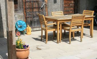 54 m2. More information by the provider: A quaint, newly renovated apartment is hiding in this romantic wooden chalet for 2 to 4 people in the center of the Berner Oberland. It’s a place to disconnect from the world and reconnect with yourself. The apartment has a well-equipped kitchen with all that you need to prepare a tasty meal as well as a dishwasher. The updated, but small bathroom has floor heating, a shower and a toilet. The spacious living room, with a sleeper sofa and a big dining room table, invites you to relax. A beautiful wood burning stove rests in the middle of the living room and is used to heat the apartment, adding to the charming atmosphere,the guest is responsible for heating the apartment with the wood stove. The bedroom has a queen size bed and a chest of drawers. The large terrace with a table and chairs, sun lounger and a gas grill is surrounded by meadows and the Swiss Alps, waiting to host a BBQ and relax. The views on the Swiss Alps are stunning and you are close to many amazing attractions, ski resorts and idyllic Swiss villages. Located on the main road with a bus stop in front of the house, you can get anywhere easily.