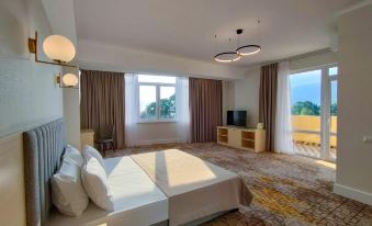 For the convenience of guests, there is also a bar with a hookah and a wide range of local and imported drinks. On the ground floor there is a restaurant where a buffet breakfast is served. The rest of the time, guests can enjoy European and Caucasian cuisine on the menu. the castle of the "Prince of Oldenburg". A special feature of the hotel is the year-round outdoor heated swimming pool and sauna located on the roof.