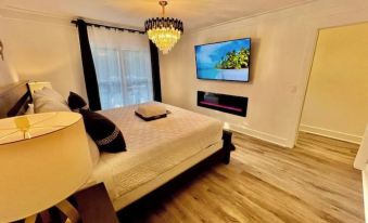 This gorgeous unit, invite you to enjoy romantic evenings in a peacefully atmosfere relaxing on the chaise lounge, by the fireplace and 65inch TV. You have the opportunity to stay in a sparkling clean cozy house at an affordable price.