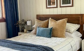The master bedroom is located on the main floor and boasts a plush king bed, space for a crib or air mattress and its own private bathroom.