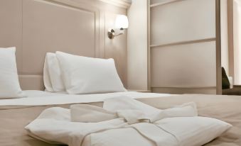 Rooms of various categories are available for booking: Standard, Superior Family, Junior Suite, Suite. All rooms are equipped with a bed, air conditioning, TV, refrigerator, kettle, and a private bathroom with shower and hairdryer. The rooms overlook a quiet enclosed courtyard, and some of the rooms will surprise you with a view of the sea.