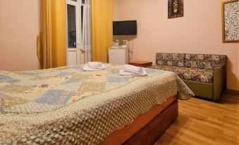 Mini-hotel in the center of Gelendzhik. It is located on the city embankment, on the first coastline. The entire entertainment infrastructure of the resort is located within walking distance — a water park, a dolphinarium, cafes, bars, shops. The distance to the airport is 6 km, to Novorossiysk railway station — 30 km.