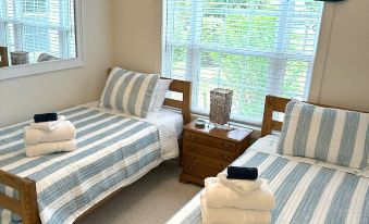 3 bedrooms: 2 single beds 1 queen bed and 1 king bed