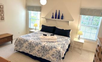Your cozy getaway awaits in Pawleys Island at this serene house. With 3 bedrooms including a king, 2 queens, and 2 twin beds, this peaceful retreat offers a jetted bathtub, shower, and a living room with a sofa bed. Our place will help you feel at home while you're traveling in Pawleys Island with a fully appointed kitchen, three living spaces with 2 televisions and a back yard area, plus plenty of parking! You'll be just a 5-minute car or golf cart ride from the beach and very close to world-class golfing like True Blue and many more courses!