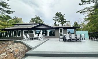 Follow the newly renovated steps down to the waterfront, taking in the exquisite landscaping that blends seamlessly with the rugged Canadian shield.