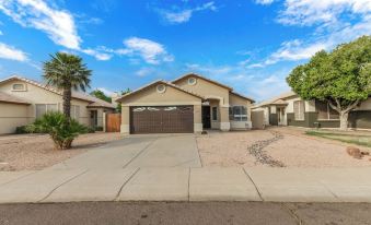 Welcome to our luxurious 4-bedroom, 2-bath single-family home located in the picturesque city of Gilbert, Arizona. Experience the perfect blend of relaxation and adventure as you unwind in the private pool and hot tub, and enjoy modern comforts such as large 4K smart TVs in every bedroom. With a private 2-car garage, high-speed internet and a host of additional amenities, this is the ultimate home away from home. Only 6 miles from Downtown Gilbert and Hale Centre Theatre!About pets:Pets allowed: limit 2 total.About checkOut:Check out before 10:00 AM.About children:Children allowed: ages 0-17.About customRules:- Guest must be at least 25 years of age with payment method reflecting guest name.- Smoking only outside...not inside,- HOA does not allow trailers to be parked outside of the garages - garage doors must remain closed as well..About checkIn:Check in after 4:00 PM.About smoking:Smoking allowed: in designated areas.About minBookingAge:Minimum age to rent: 21.About events:No events allowed.