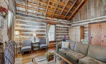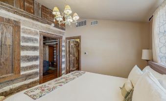 With vaulted ceilings, exposed beam walls, and a lovely stone fireplace, this suite is full of Texas Hill Country charm. Take a seat in the rocking chair as you browse the WiFi or watch your favorite show on the flatscreen TV.