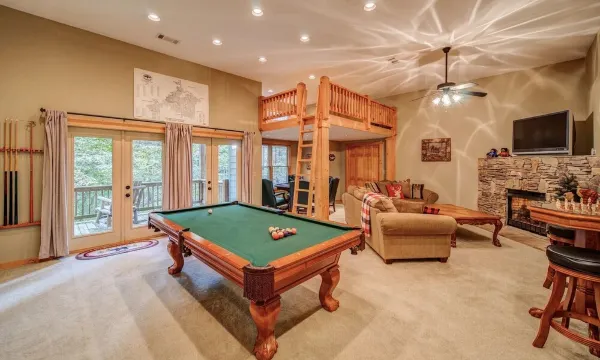 This beautiful 4 bedroom 3.5 bath home has over 3,900 square feet of living space, so lots of room to spread out! Here you have end-of-the-road privacy and can enjoy the calming sounds of the neighboring creek. Two gas stacked stone fireplaces, multi-level decks, granite countertops, stainless steel appliances, game room with billiards table, poker table, chess/checker table, and loft. Located in the gated river community of Coosawattee River Resort, you're close to shopping and restaurants, yet will feel like you're at a private retreat to recharge and enjoy nature.About pets:Pets allowed: dogs (limit 2 total).With owner approval and pet fee..About checkOut:Check out before 10:00 AM.About children:Children allowed: ages 0-17.About checkIn:Check in after 4:00 PM.About smoking:Smoking is not permitted.About minBookingAge:Minimum age to rent: 25.About events:No events allowed.