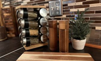 The outdoors boasts the quiet, nature feels of Girdwood, Alaska. Enjoy a soak in the hot tub, sip on a cup of complimentary coffee/tea while sitting on the porch rocker, or savor some s’mores over the fire.