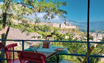 Absolutely stunning view from the patio, you cannot beat the location, quietness and views. About a 12 minute walk to the bottom of the castle, shops and restaurants. Guesthouse is quiant and kept very clean. There were a few ants on our beds each day but i think its more location then cleanliness. The only trouble I had was even though I messaged with the manager the night before and gave her an approximate time of arrival....i messaged when we arrived and no one arrived to check us in until a hour after we got there. So we sat on the patio in the heat for the hour and it was quite frustrating. She said she didnt receive the messages until later but it didnt make it any less frustrating for myself and kids.