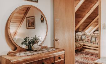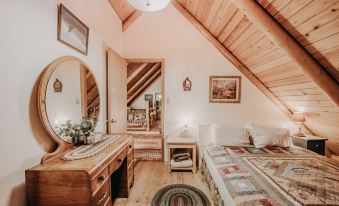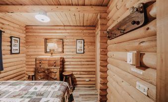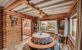 This 2-story, 2+ bedroom, 1 ¾-bath 1500 sq ft rustic cabin features lots of country charm with modern conveniences! Entering through the side entrance brings you into an open and airy living/dining area with a freestanding gas fireplace, a full size futon, a flat screen monitor with wifi, a separate kitchen with all new appliances including a dishwasher, one bedroom with 1-queen size bed, and one full bath. Ascending the second floor you’ll discover an open loft sleeping area with 2-twin size log beds, a partitioned ¾-bath, and one bedroom with 1-queen sized bed, plus a laundry area with a washer and dryer. Just outside the main floor is a covered country style porch—perfect for sipping your favorite afternoon beverage, and a gas grill. This pet-friendly family vacation property says “cabins-in-the-mountains” and sleeps 6 to 8-persons (enforced Maximum Occupancy).