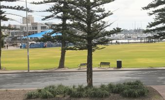 A great location, close to beach and pier restaurants, but the accommodation was tired and dated. We had to skulldrag our luggage up a flight of stairs, no lift or ramp. In our room was a spa which had been decommissioned, waste of space. No microwave, would’ve thought that was standard nowadays. Buses coming and going outside our room day and night. Hard to recommend this place, c’mon guys spend some money and update!
