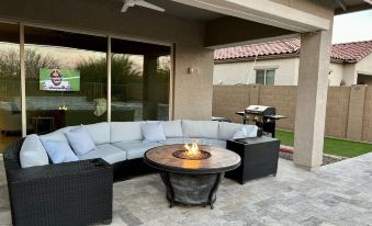 The perfect vacation home awaits you in this well-appointed ranch style home! You'll enjoy four bedrooms, including a second suite with attached living space and separate entrance. The clean, open eat-in kitchen highlighted by a large dining table, and additional seating for four at the kitchen island. Relax and kick back on the covered patio featuring a ceiling fan, patio misters, comfortable sectional seating and gas fire table while watching the golfers enjoying their round. Take a dip in the private, heated pool that sports a tranquil water feature and LED lighting, or unwind in the attached spa after a day of hiking or mountain biking on the nearby trails. Wireless internet access is available, as well as streaming tv. Whether you are looking for a quiet space to relax and unwind, catch Spring Training baseball, or play a round of golf, this home is perfectly located to enjoy all those activities and more! Located about 35 minutes from Sky Harbor International Airport and easy access to Scottsdale from the nearby I-10. Spring Training for the Cleveland Guardians/Cincinnati Reds is a quick 15 minute drive down the hill, and the PHX Raceway is even closer.