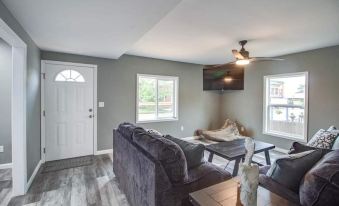 Welcome to "Rafton Inn"- This overnight-stay is located in the heart of Grafton IL. You will be located right on Main Street and in walking distance to all unique shops, winery's and attractions that this quaint river town has to offer. This 3 bedroom 2 bath house is completely remodeled. Furnished with added amenities, enjoy the spacious deck, outdoor grill, fire pit, this home is set up to sleep 2 to 12 people. Masterful design and modern luxury are embodied in this unique Grafton property. You will enjoy the perfect setting for relaxing, entertaining and/or hosting. Walking distance to everything this charming little town offers from boat rentals, wineries, Zip line, sky tram, live music, great restaurants, scenic views, horseback riding, hiking, winter ice skating or shopping. You are sure to find something you and your guests will enjoy.About pets:No pets allowed.About checkOut:Check out before 10:00 AM.About children:Children allowed: ages 0-17.About checkIn:Check in after 4:00 PM.About smoking:Smoking is not permitted.About minBookingAge:Minimum age to rent: 25.About events:No events allowed.
