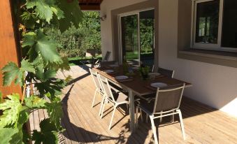 This building was recently built (2011) and offers a 45-m² covered terrace and a view of our fenced parkland (with oaks). The beach is located 3 km away, there is a cycle path all along (bikes can be rented). The house sits close to Soulac-sur-Mer and Montalivet. There is a heated pool with a 50-m² terrace.............................................................................................About pets:Pets allowed.About checkOut:Check out before 10:00 AM.About children:Children allowed: ages 0-17.About checkIn:Check in after 4:00 PM.About smoking:Smoking allowed: in designated areas.Merci de fumer en extérieur..About events:Events allowed.