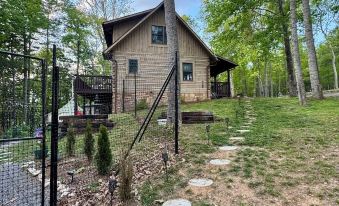 Tucked into a private wooded setting, this cozy yet modern cabin sleeps up to 8 guests comfortably. This includes a queen bed upstairs with a private bathroom, a second queen on the main floor, and a lower-level bunk room with 4 twin bunk beds—perfect for kids or groups. Each level provides its own sense of space while still keeping everyone connected