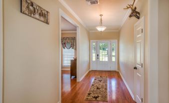 The inside is lovely, sure, but the outdoors is where you want to be to make the most of your time with us. We have an outdoor bar setting with ceiling fan and 5 barstools, a front porch swing, back porch, patio dining area with 6 chairs and a table, and a grill for dining and entertaining. Or, if you prefer the nature aspect of our ranch, sit poolside or by the pond and listen to the cows moo.