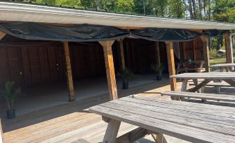 Please note that there are EXTERNAL cameras on the property for safety purposes of guests & owners.About pets:Pets allowed: dogs (limit 3 total).Pets must be disclosed and approved..About checkOut:Check out before 11:00 AM.About children:Children allowed: ages 0-17.About customRules:Please adhere to the 11 pm town noise ordinance. Take the party inside by this time!.Please empty trash in the dumpster across the street before you leave.,Pavilion/gazebo use is an additional cost. Please inquire for more info!.About checkIn:Check in after 4:00 PM.About smoking:Smoking is not permitted.About minBookingAge:Minimum age to rent: 21.About events:Events allowed: family gatherings, birthday parties, weddings.Maximum event attendees: 99,Events must be discussed & pre-approved!.