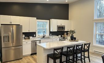 The house itself is beautiful with an open concept in the living room and kitchen. There are two bedrooms and one bathroom upstairs while there is a living room, foosball table and another bathroom downstairs. The host was very responsive when we had questions about how to turn on the heat. The house is also stocked with snacks and all the necessities needed for the kitchen. We also had three deer strolling through our property at least three times while we were there. Overall we had a great weekend. The accommodations were just as they described, and our experience was awesome.
