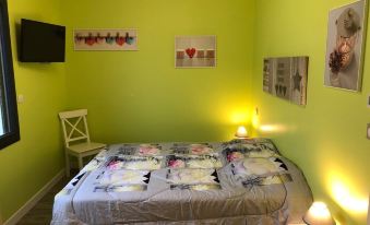 -Green room: New and comfortable bedding in 160 x 200, equipped with a 32 inch LED television.