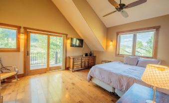 The main floor opens into a sprawling great room with a fireplace, seating and couch space for the whole gang, dining room and perfectly appointed modern kitchen with everything you need to bring out your inner-chef. The sliding glass doors next to the dining table take you out to the oversized back deck, complete with postcard views, gas grill, and direct access to the "Deli Trail" Town Ranch Biking/Walking/Skiing trail.