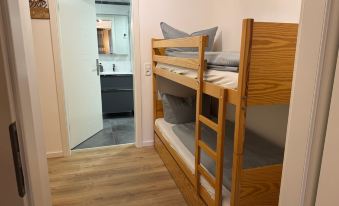 Our approx. 35 sqm apartment offers the perfect retreat for your stay in Hahnenklee. The open-plan living, dining and sleeping area is equipped with a practical foldaway bed, which saves space during the day and offers comfortable sleeping comfort at night. There is a bunk bed in the hallway for additional guests, ideal for families with up to two children.