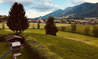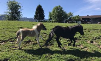 Our farm - fantastically located - offers a unique view of the Allgäu Alps. Due to its exposed location, the farm is ideal for families with and without children, sports enthusiasts and peace seekers. Our two comfortably furnished apartments each have a comfortable kitchen, two bedrooms, shower / WC and a balcony with a magnificent view of the foothills of the Alps. Our large garden is ideal for fun barbecue evenings and for children to play. About pets:Pets allowed: dogs (limit 2 total).About checkOut:Check out before 10:00 AM.About children:Children allowed: ages 0-17.About checkIn:Check in after 3:00 PM.About smoking:Smoking is not permitted.About minBookingAge:Minimum age to rent: 18.About events:No events allowed.