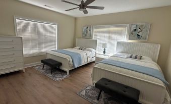 4 bedrooms: 2 bunk beds 3 queen beds 1 king bed and 3 double beds