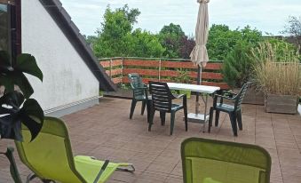 The nearest airport is Dortmund Airport, just about 52 mins from hotel by car (58.1 km) away.Which airport is closest to Cozy vacation apartment with large roof terrace in an upscale residential area.?
