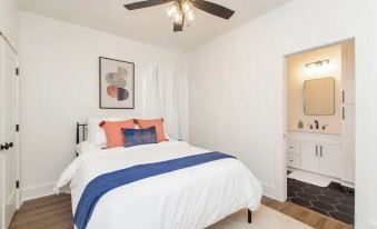My stay here was wonderful. My check in process was easy and the host communicated well. The home was very clean and I loved how cozy it felt. The location is a safe area and lots of restaurants around and grocery store is close. The property is nearby a train track, but it wasn’t bad as I thought it would be. I slept through every night I was there. The host alone deserves 100+ stars because she had snacks and water available. The kitchen was well stocks and that included coffee (kcup), cream and sugar. I was blown away by this property it deserves 1000+ stars. Now, if i had to critique something it would be add a towel rack in the bathrooms and a thicker curtain on the front door because people can see right through the one that’s there. Great home away from your home.